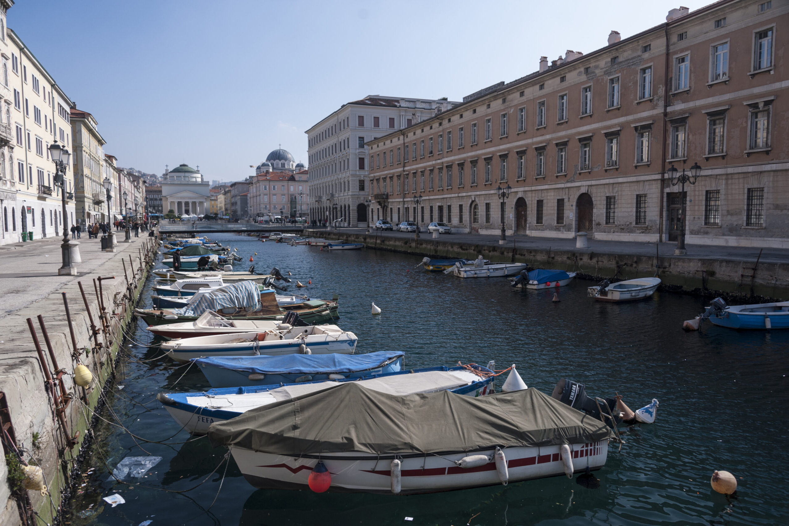 Der Frühling stand schon vor der Tür, und wir begaben uns ans Meer. Heute hatten wir uns den Hafen von Triest vorgenommen. Die windige Bora schlug uns entgegen. Aber das störte uns nicht. Die Sonne strahlte ebenso. Nach einem typisch italienischen Cafe spazierten wir durch das alte und neue Triest.
